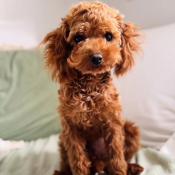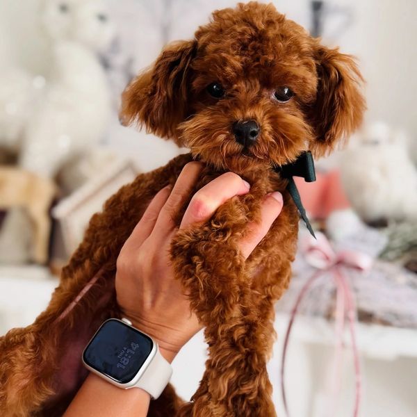 Daddy is a tiny red Asian poodle imported from China - he weighs just 1.3kg and has a very short muzzle. He is PRA clear.